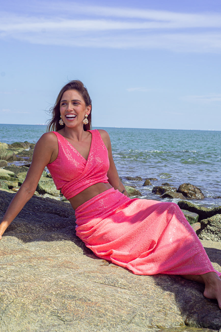 Maxi falda de lentejuelas con Top Cruzado, arman este conjunto ideal para tu ocasión especial !